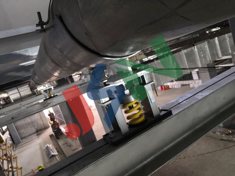 4、管道支架做減振處理一般的管道支架與地面的連接均為硬連接,導(dǎo)致管道的振動傳遞到建筑結(jié)構(gòu),所以如果在支架下面做好減振處理,則能較好的阻止振動能量向建筑結(jié)構(gòu)的傳播。