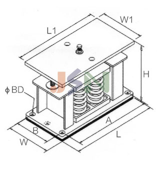 JA型彈簧減振器擾度25mm,在額定載荷下固有頻率3.2Hz,阻尼比為0.03,是積極、消除減振的理想產(chǎn)品。