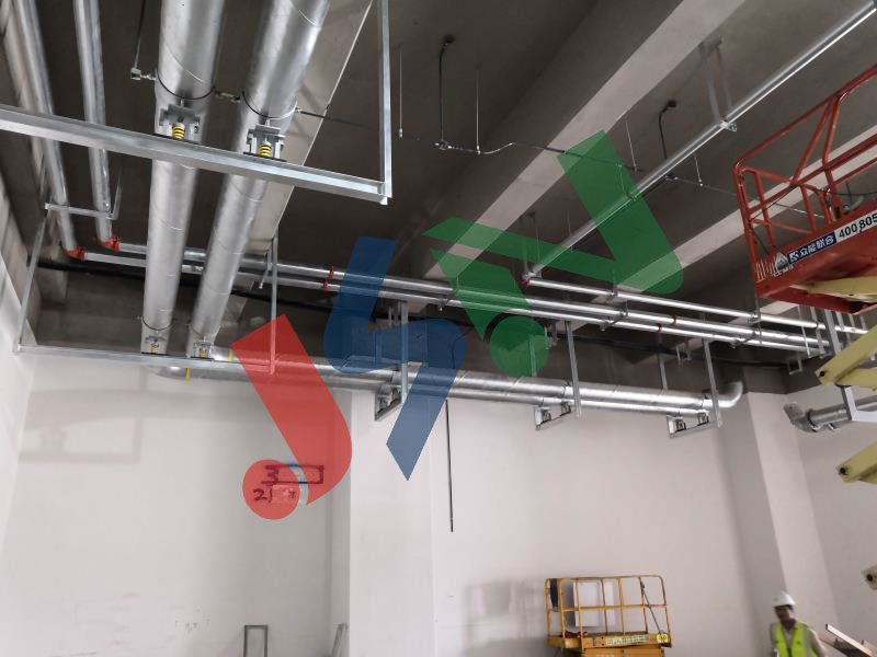 4、管道支架做減振處理一般的管道支架與地面的連接均為硬連接,導(dǎo)致管道的振動傳遞到建筑結(jié)構(gòu),所以如果在支架下面做好減振處理,則能較好的阻止振動能量向建筑結(jié)構(gòu)的傳播。