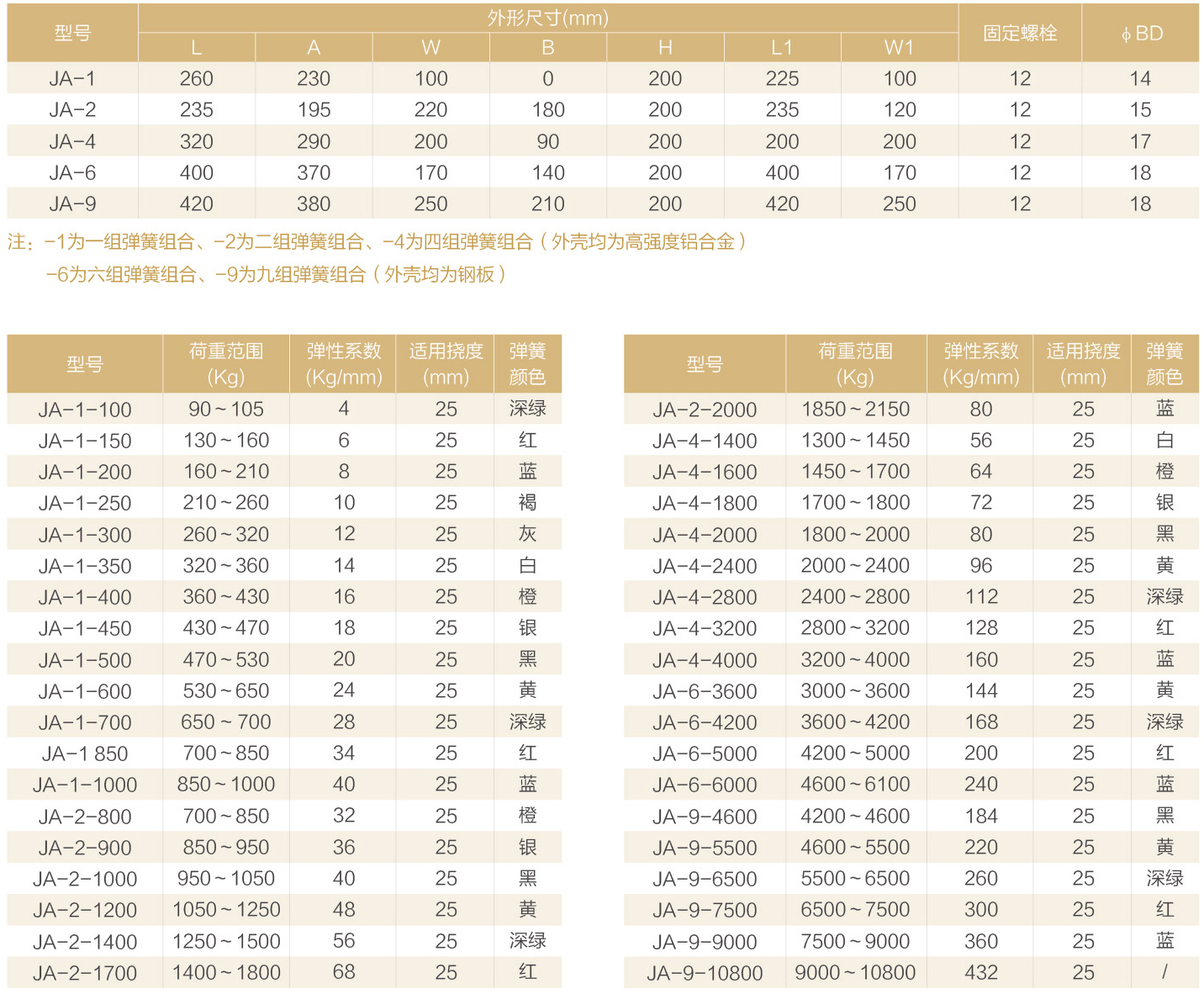 JA型彈簧減振器擾度25mm,在額定載荷下固有頻率3.2Hz,阻尼比為0.03,是積極、消除減振的理想產(chǎn)品。