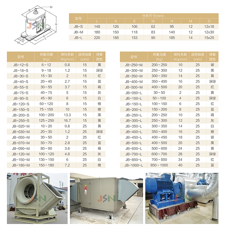 ● 荷重撓度25mm能有效消除機械結(jié)構(gòu)振動